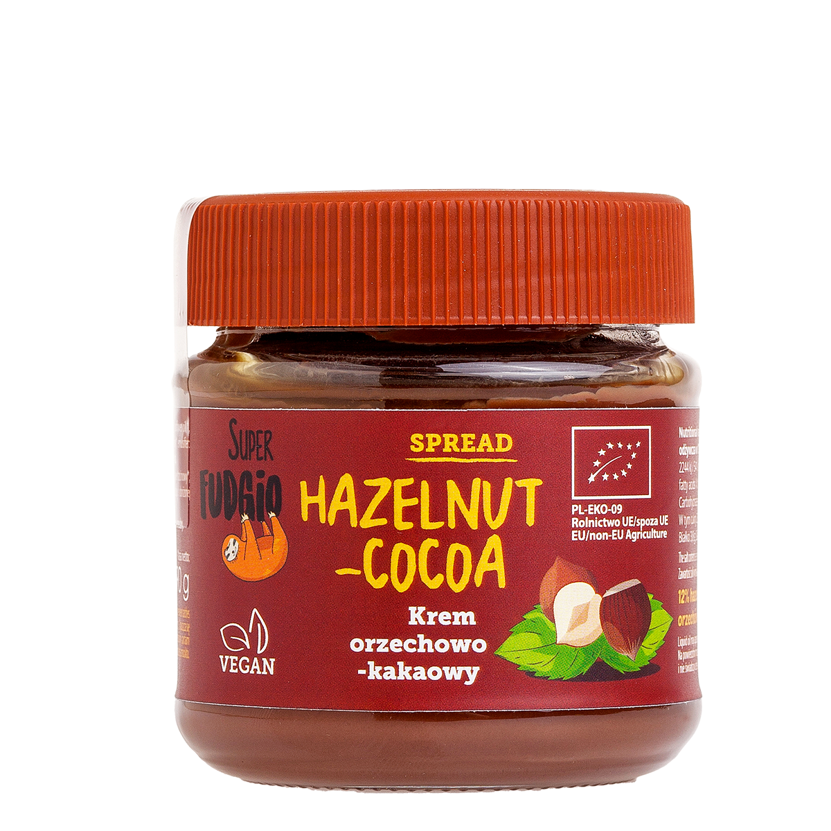 O creme de cacau e avelãs Super Fudgio é não tem glúten, óleo de palma, nem OGM. Perfeito para barrar no pão, usar em sobremesas, o creme para barrar é uma delicia.