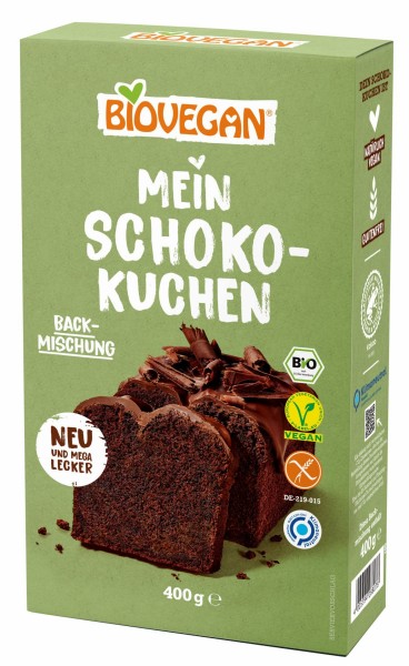 O preparado para bolo de chocolate Bio Vegan, não tem glúten e tem deliciosas pepitas de chocolate extra.